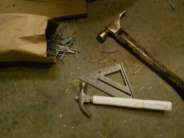 Las únicas herramientas que utilizamos fueron martillos, mi sierra tirón, y ¡ oh, una cinta de medir.