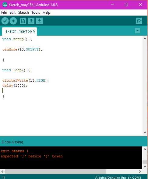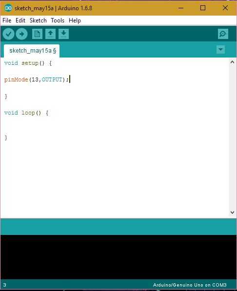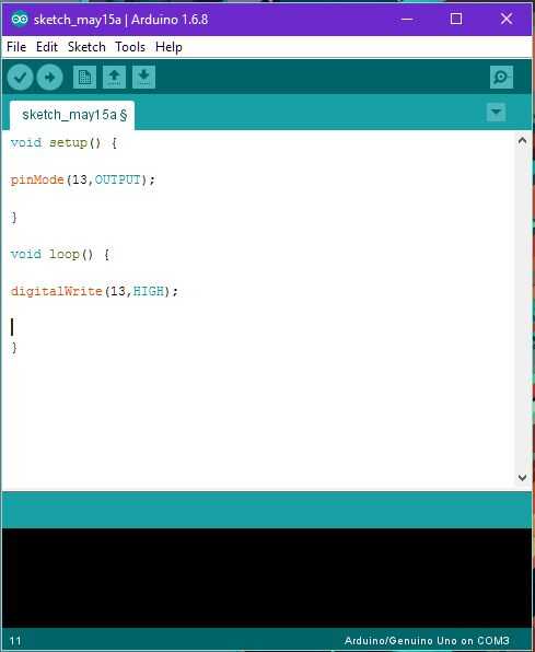 Ahora en nuestro bucle tenemos que encienda el led para que nos escriba a digitalWrite(13,HIGH).