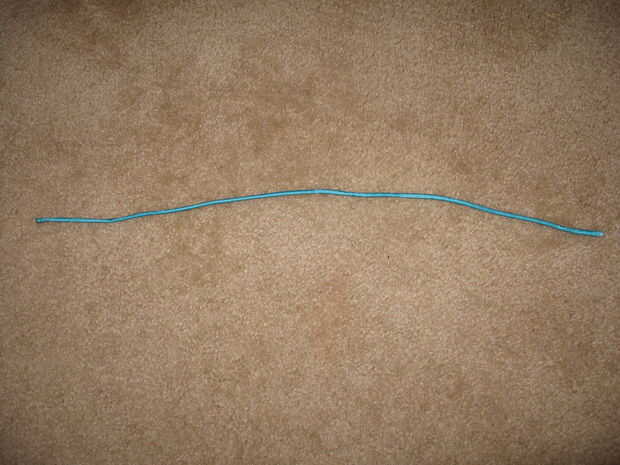 Necesitarás aproximadamente un pie de paracord para empezar. Mi muñeca es aproximadamente 8" alrededor (medido, no improviso sé) y después de atar los nudos todavía acabé recorte aproximadamente 2" de, pero su mejor tener demasiada cuerda que demasiado poco