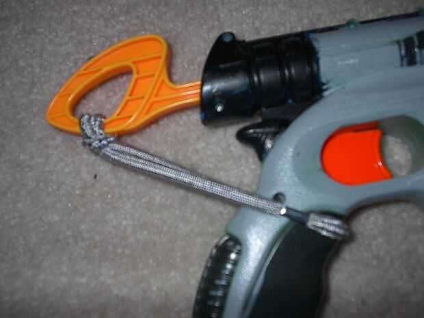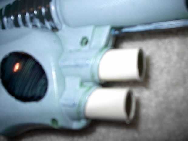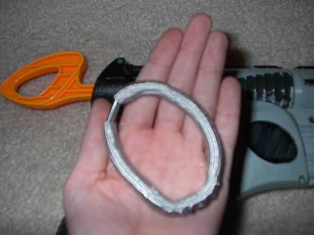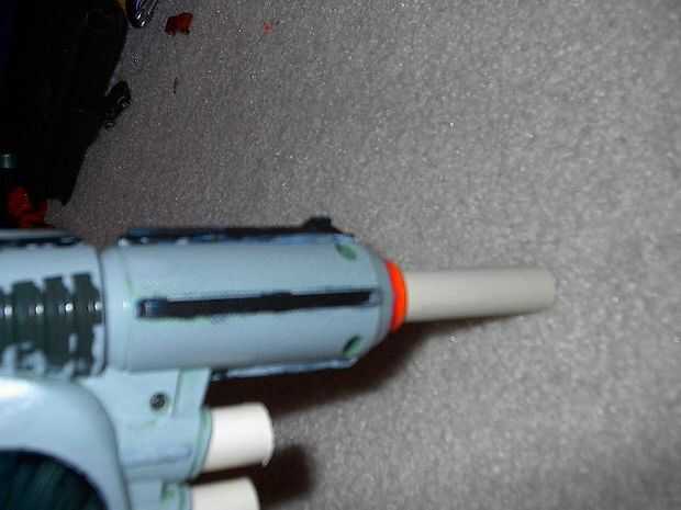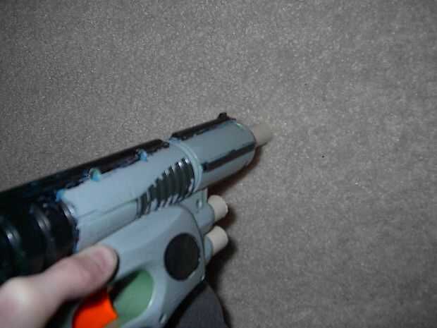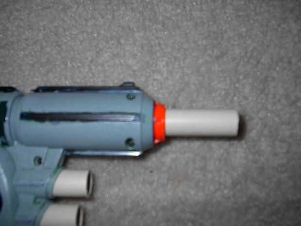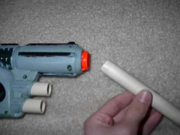 Tomar el tubo de 5 pulgadas e introducirlo en el barril existente. empuje duro, que se mantendrá en estrecha. Ahora, tomar la 2 2 pulgadas tubos e insertarlos a la mitad en a los actuales titulares de dart. Pegue estas sit in y dejar mientras seca el pegamento. Envuelva la venda alrededor de tire de la palanca trasera y seguro, luego tire alrededor de la manija.