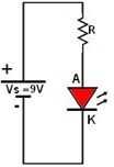 Hola chicos, aquí es el circuito más simple; está constituida por una resistencia, un LED y una batería.