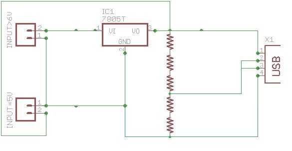 Si lo desea, puede poner entradas separadas para 5V y 6 + V (la entrada de 5V saltándose el regulador).