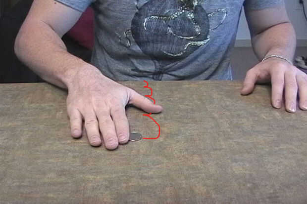 Coloca la moneda sobre la mesa alrededor de 8-12 pulgadas delante de usted. A continuación, coloque su mano sobre la moneda para que su alcance cubre la moneda. En este punto, comienzas a frotar la moneda sobre la mesa en forma circular.