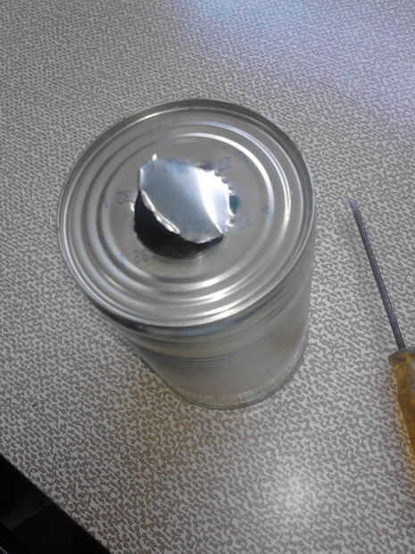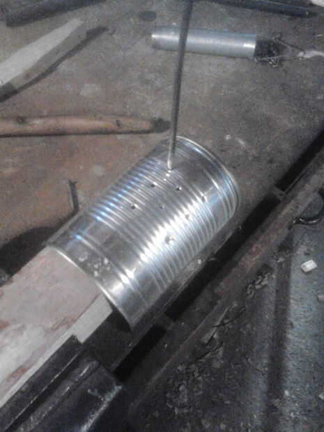 Siguiente, sacador de docena de agujeros en la lata pueden, utilicé el clavo y martillo para que.