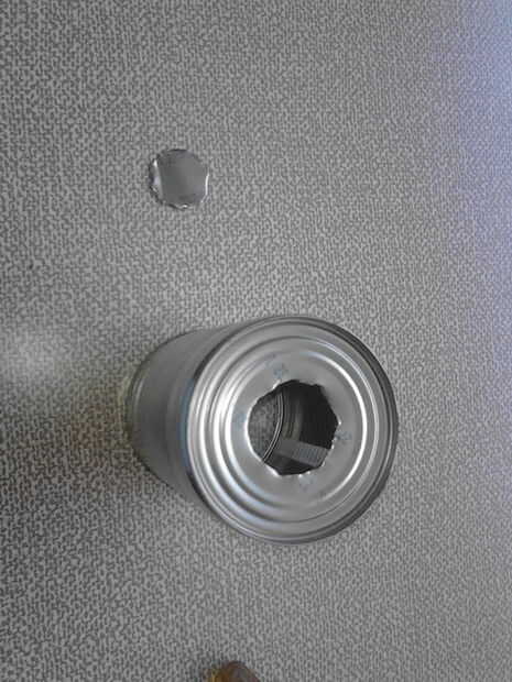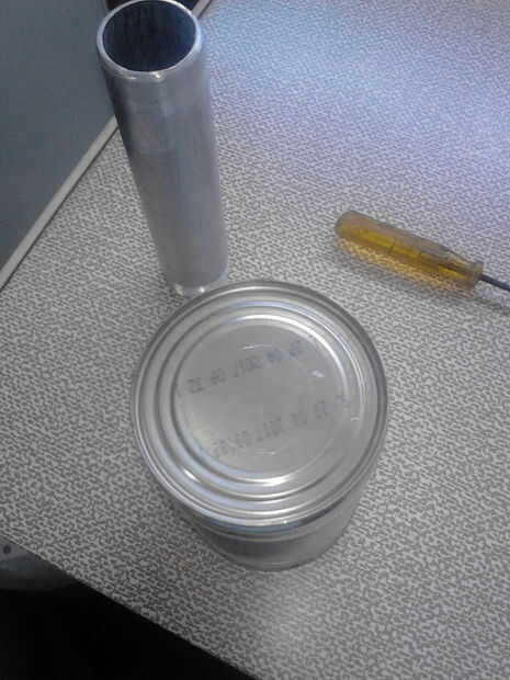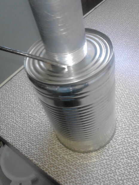 Siguiente paso es cortar el círculo en la parte inferior de la lata, tamaño exacto (o apenas un poco más pequeño) de tubo de aluminio.