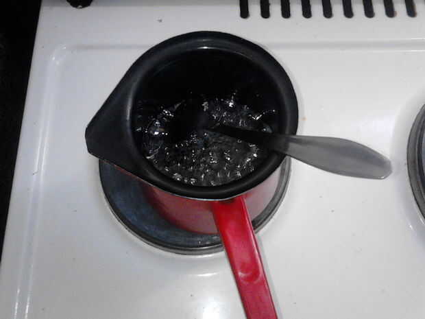 Siguiente paso es derretir azúcar y viértalo en el tubo de aluminio.