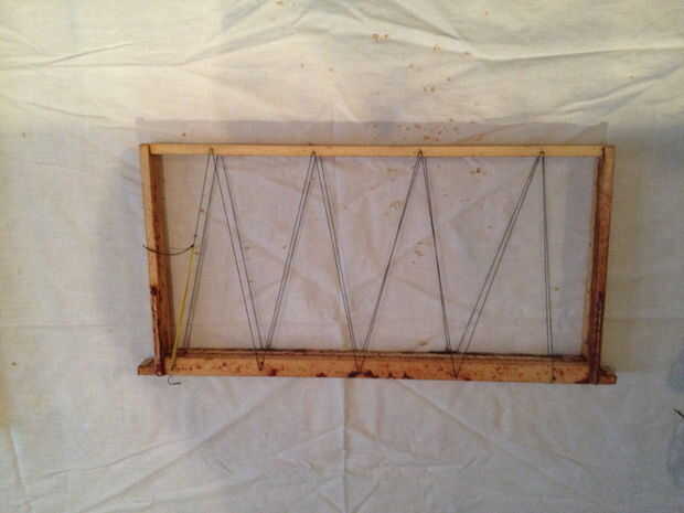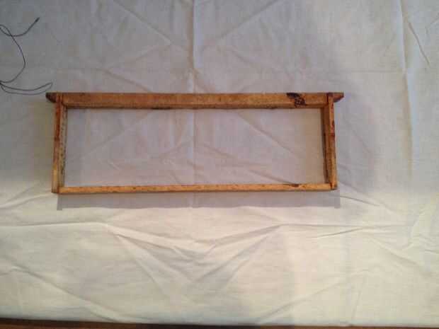 El truco está en volver a utilizar el peine en los marcos de una colmena nueva. Esto se hace colocando el peine corte a comerciales Marcos. Hay varias maneras de hacerlo. La forma más sencilla que he encontrado utiliza una banda elástica.