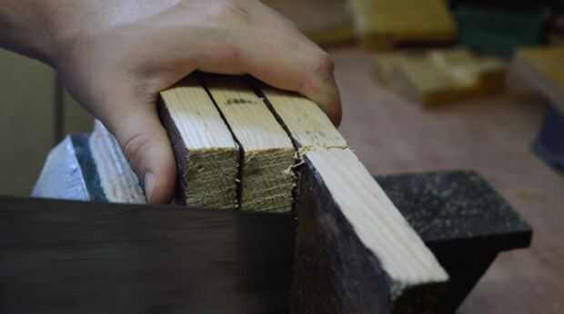 Como sugiere el título de este instructable, presentaré esta mazo de madera de palet. Para ser más específico, va a utilizar listones de madera de estos palets. Cortar tres tramos de igual longitud. Estos formarían la cabeza.