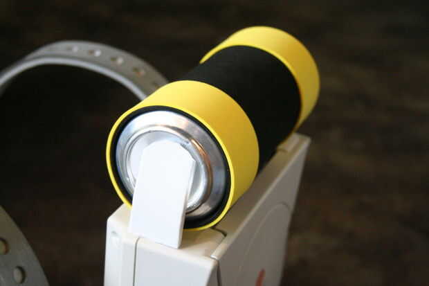 Con la espuma negra, corte la anchura de la can y el tiempo suficiente para envolver alrededor de él.