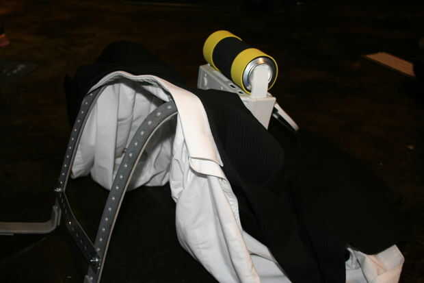 Colocación del arnés y marque las ubicaciones donde se necesitará cortar en el frente, para que los soportes del keyboad cabrán a través.