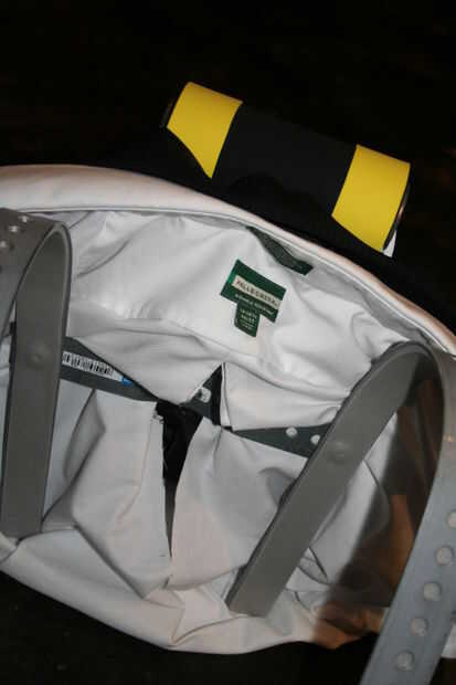 Poner la camisa en el arnés y la chaqueta de traje encima (como usted lo usa)