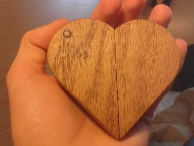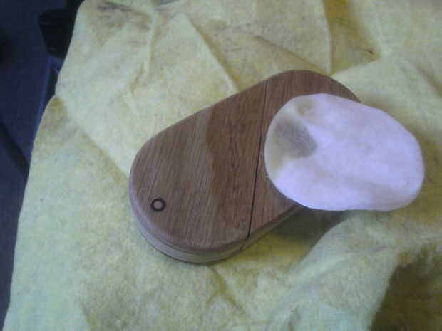 Por ahora usted debe dejarse con un locket casi terminado. Para acabar, primero cortar el árbol y las mangas hacia abajo y les presentado para sentarse a ras de la superficie. Luego lija en las esquinas exteriores, (sólo la externas!) con un papel de lija de 220 grano. Cuando estaba satisfecho con la forma, había pulido con lija de grano 600 y dio la superficie exterior un tratamiento final de aguarrás y aceite de linaza. Además de mejorar la apariencia, también da una sensación suave y cómoda, y creo personalmente que huele fantástico.