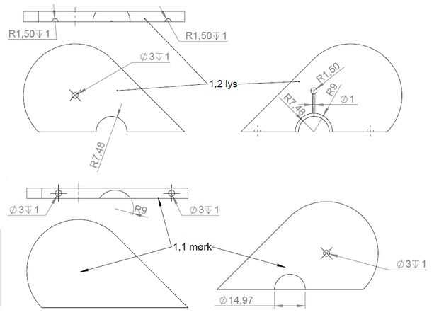 Para poder hacer un seguimiento de las diapositivas, decidí que una forma de numeración, que también puede verse en uno de los cuadros. Se hace para que al ver el medallón de la parte delantera, las 4 capas superiores están etiquetadas 1.x, donde x es 1-4, a partir de 1 de la capa delantera. Las partes más bajas de 4 es lo mismo, sólo 2.x en vez de 1.x. Esto es muy útil, al hacer las piezas para hacer un seguimiento de les y asegúrese de que todo se hace bien y ninguno de los dos se confunden.