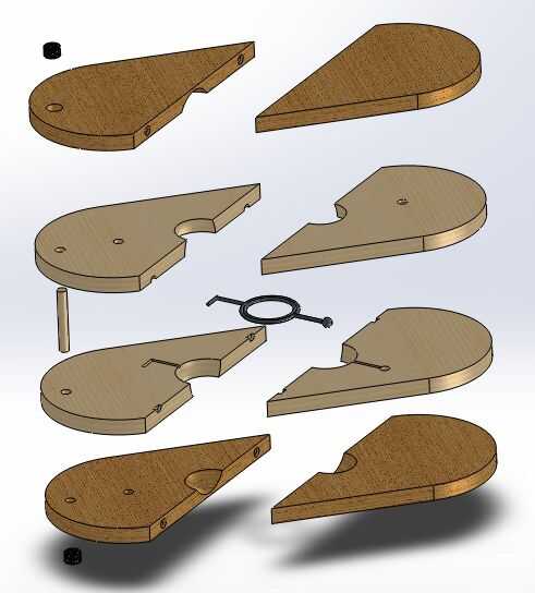 El pin, que tiene una esfera en un extremo y una esquina en el otro extremo, es el eje que gira toda la parte inferior de. El extremo redondo puede girar libremente dentro de las capas medias dos 1.2 y 1.3, que se pegan, mientras que el extremo de la esquina no puede girar dentro de la capa, forzando el pasador de vuelta, junto con las capas medias más bajas, 2.2 y 2.3. En el círculo grande en medio de la clavija, se puede pegar una imagen a cada lado y así en una posición que mostrará la primera imagen y en la segunda posición, la segunda foto. Los imanes son para fijar las piezas en las posiciones que queramos.