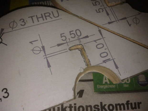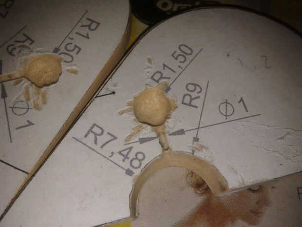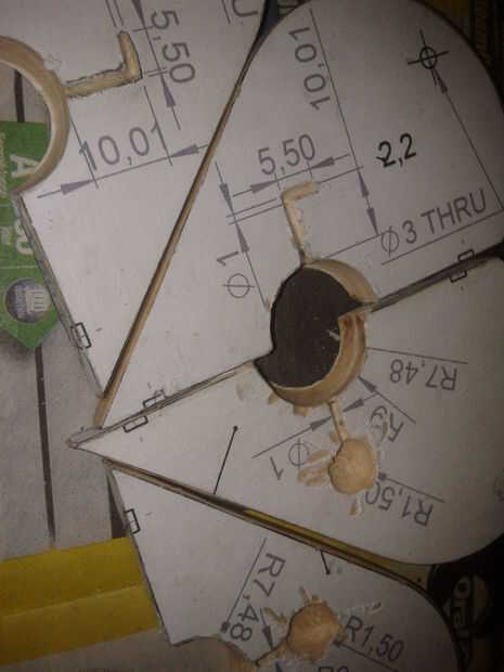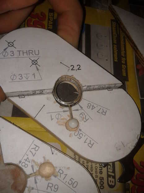 Cuando el papel se pega, que es coincide con el lado opuesto tan cerca como sea posible, es hora de que los detalles internos. Por eso, me refiero al que orbe formó el pasador gira dentro del agujero y las arboledas en las dos capas medias ese sandwich el pin. Todo lo hice con mi dremel y una selección de diferentes router y brocas de lijado. Al hacer esto