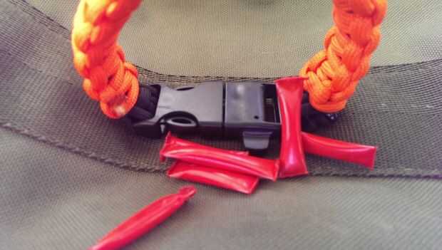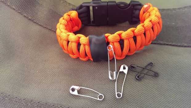 Aplicaciones de primeros auxilios: Proporcionar sustento por modelar un anzuelo y maridaje con hebras de paracord para atrapar alimento. Quitar una astilla.