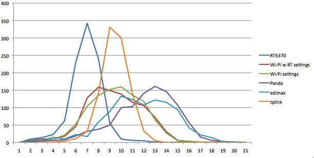 Un dispositivo puede ser anunciado como 802. 11n, pero no ser capaces de alcanzar velocidades de ancho de banda de 11n en Raspberry Pi. La velocidad de transmisión del dispositivo el listado es engañosa. En cambio, medir ancho de banda real.