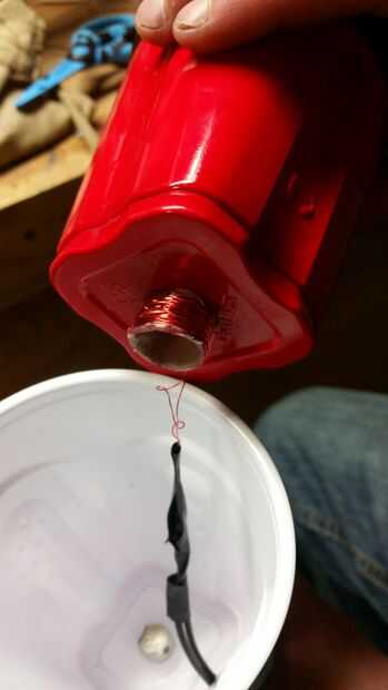 -La Copa superior debe tener la cinta en el anillo para mantenerla a una distancia adecuada del imán. Esto puede ser que necesite jugar con encontrar el sonido más ruidoso.