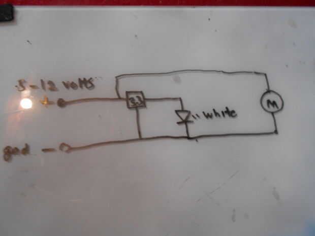 El esquema es muy simple. La entrada puede ser de 5 voltios a 12 voltios. Si te excedes puede destruir el ventilador. Me olvidé de poner el interruptor en la scchematic. debe ir antes del regulador