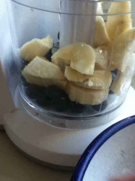 ingredientes:Col rizada, lavados y rasgado en pedazos, tallos1/2 banana grandeBayas (fresas, arándanos, frambuesas, etc.)grande 1 cucharada de helado de vainilla (o helado)Instrucciones:Llene la mitad de un gran plato con col rizada. Llene la otra m
