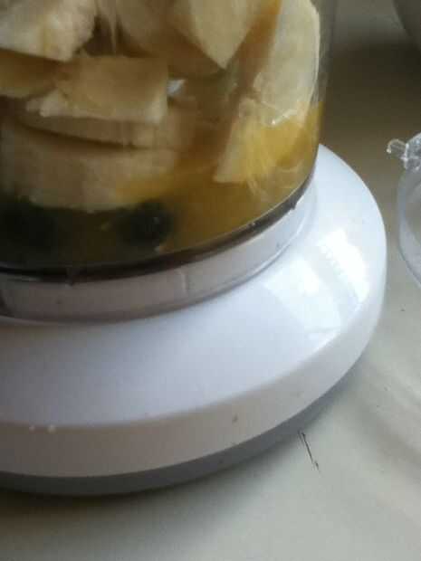Paso 1: albaricoque Este licuado será suficiente para un batido grande, Inicio de agregando un albaricoque fresco.Paso 2: plátanos Añadir unos 2 plátanos frescos (no congelados).Paso 3: frambuesas Añadir alrededor de un cuarto de taza de frambuesas f