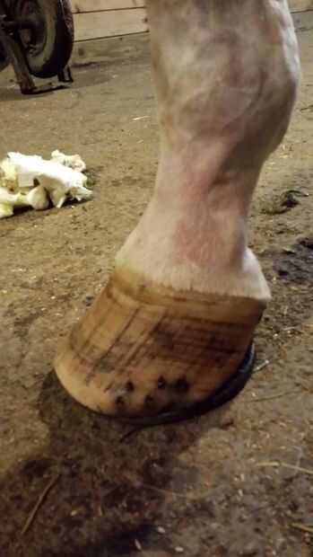 Paso 1: Comience con un casco seco y limpio, los zapatos son opcionales. Asegúrese de que el enganche esté secado al tacto en las zonas suaves como la banda de coronet y talón.
