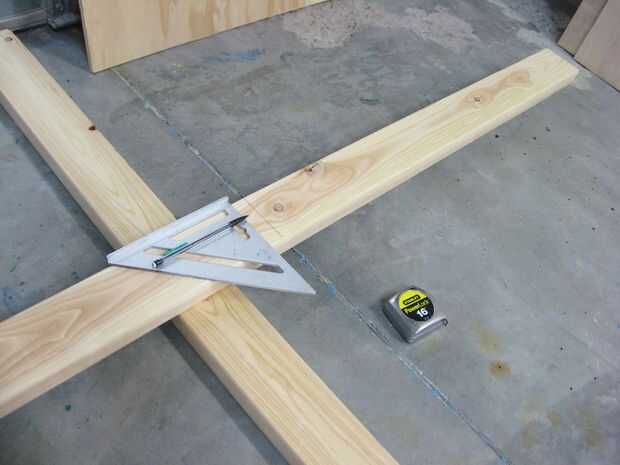 Vamos a cortar dos tablas de cada 2 x 4 que se convertirán en patas, y las piezas restantes se utilizarán para la viga superior.