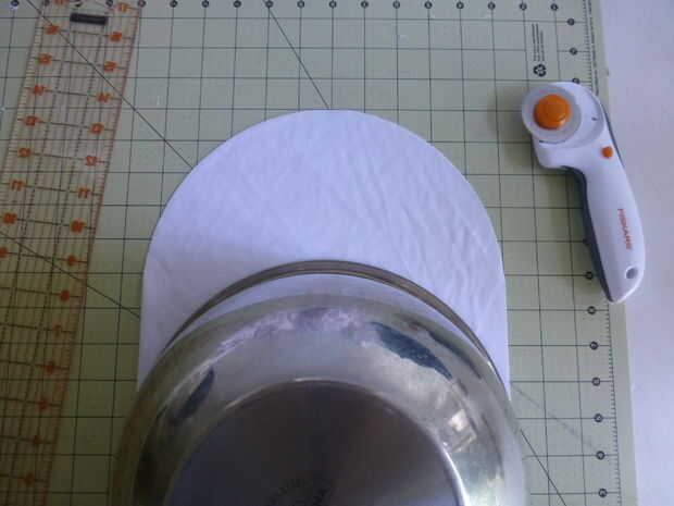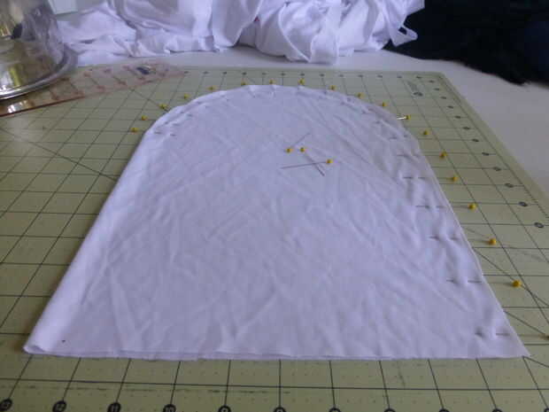 Un tazón de 5 cuartos fue justo para cortar un patrón hemisférico. Luego fijar los bordes de corte.