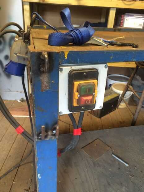 Tengo que decir aquí, que me encanta a mi soldador de R-Tech, es genial, fácil de usar, MIG y Stick, pero tiene un defecto de diseño principales, el interruptor está en la parte posterior! Significado que tiene que inclinarse detrás del soldador cada vez que desea activar y, así para resolver esto, la toma de 16A en el carro se alimenta a través de un magnético interruptor de encendido que reclama de una sierra vieja, así que ahora puedo convertir el soldador encendido y apagado, sin siquiera agacharse. Perfecto.