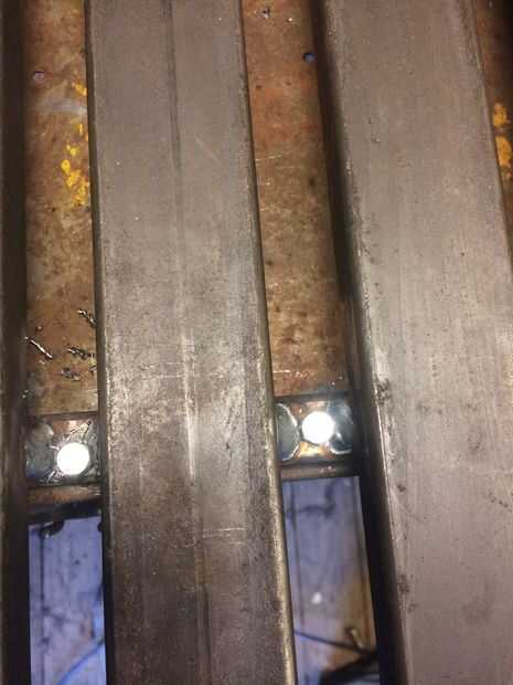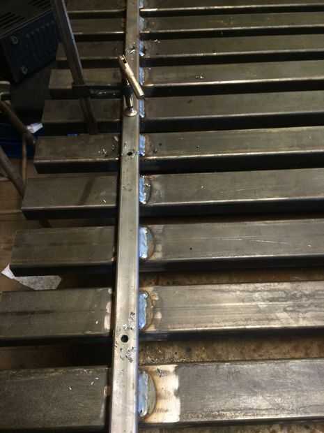 Mientras se volcó perforar algunos agujeros en el marco para fijar al carro y entonces perforado a través del riel superior del carro así, y fijado con tornillos M8, esto quita cualquier desviación que tenía en el marco después de la soldadura.