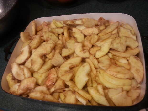 Paso 1: Primer pre calentar más a 375Paso 2: Cortar las manzanas Cortar las manzanas en cuartos y luego sacar las semillas.Paso 3: Añadir la canela y una pequeña palmadita de la mantequilla cada cuarto.Paso 4: Añadir un zumo de manzana dentro de la c