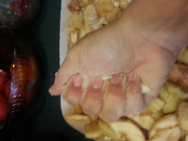 Paso 1: Primer pre calentar más a 375Paso 2: Cortar las manzanas Cortar las manzanas en cuartos y luego sacar las semillas.Paso 3: Añadir la canela y una pequeña palmadita de la mantequilla cada cuarto.Paso 4: Añadir un zumo de manzana dentro de la c