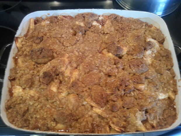 Como todas mis recetas, este crumble de manzana es fácil, porque no me gustan las cosas complicadas. La base es sólo manzana con una cucharada de harina, y el desmoche del streusel es mi penúltima tarta de manzana caramelo miga topping, mezclado con