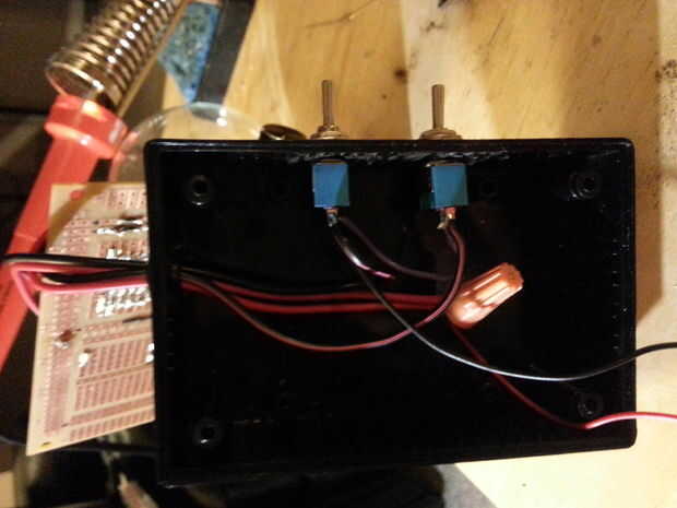 El circuito es poweed por una batería de 9 voltios. El potenciómetro controla la velocidad de carga y descarga de los condensadores conectados al circuito 555 temporizador. Esto le permite controlar la velocidad en que los LED parpadean. Los LED iluminan individualmente en pasos. Cuando tienes la velocidad subida alto tiene un efecto de luz estroboscópica. Tienes que ver en la oscuridad para apreciarlo. Hay dos enlaces de Video en el principio de este instructable de esta operación. ¡ Disfrute!