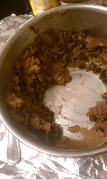 Usar un tazón grande para batir la mantequilla, azúcar moreno y azúcar blanco. Luego se mezclan en el pudín hasta que está completamente mezclado. Luego mezcle la nutella y huevos. Después de que la mezcla está completamente mezclada, mezcla la harina completamente. Finalmente agregar los chips de chocolate y mezclar.