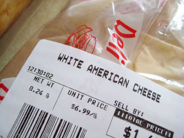 3. Si le sucede que vivo en una región del país donde recién se rebana queso americano de un bloque grande (preferiblemente tierra-O-los lagos), les pedimos hacer un cuarto libra de recién rebanadas de queso americano blanco. Si, como yo, sucede vivo en la costa del mal, donde la gente no tiene claramente estándares, incluso para artificial alimenticio procesado como queso americano, luego ir al contador de todos modos solicitar un cuarto libra de sus desperdicios previamente rebanadas de queso americano blanco. Incluso la inmundicia previamente en rodajas de queso americano detrás del mostrador es leguas más allá de la basura las que encontrará en la sección de láctea.
