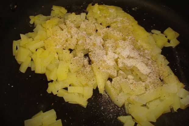 Poner las papas en la mantequilla pan, espolvorear en la cantidad deseada de cada condimento y vierten aproximadamente 1/4 taza de agua. El agua ayuda a despegar las patatas (consigue todo pegajosos cuando cocinados en el microondas) y ayuda a difundir todo el condimento uniformemente. Cuando el agua ha cocinado lejos, pasar a cocinar parte 2.