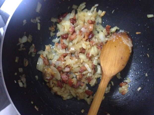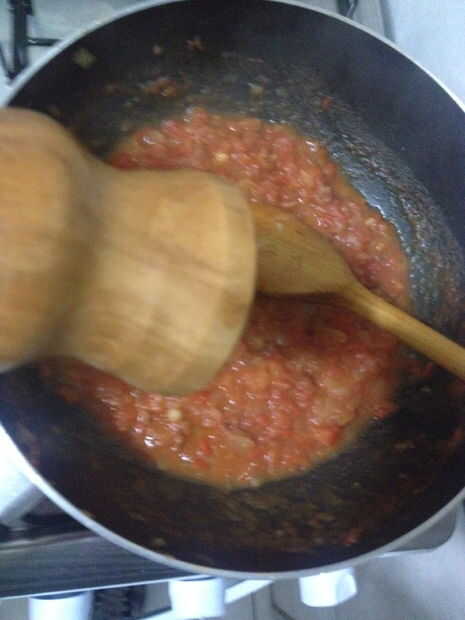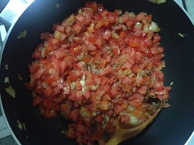 Dejar la cebolla caramelizar y añadir luego los tomates