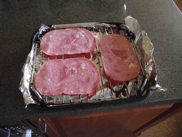 Así que compré algunos tocino del supermercado, he utilizado Bacon ahumado de hombro de Manuka y quitado la corteza, esto fue puesta en el horno a 250 C