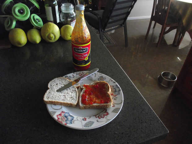 Más cercano que pude encontrar fue Salsa de Chili dulce disponible en mayoría de los supermercados. Difundir esto en una sola pieza del pan.
