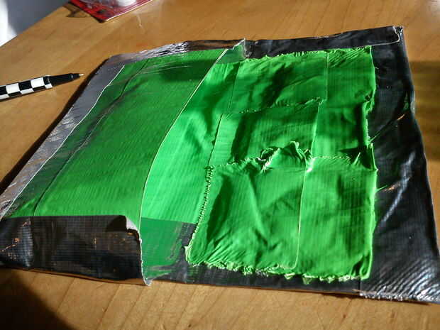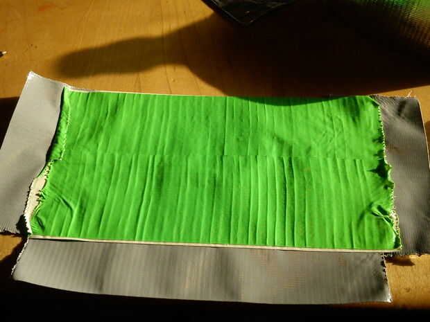 Poner un poco de cinta en todos lado largo de la tela recién hecha, como se muestra. Plegar la cinta en el cuerpo para colocar el bolsillo al cuerpo. Esto es donde va la consola.