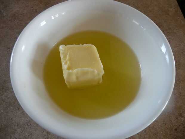 En el microondas, brevemente el calor la mantequilla y aceite de oliva hasta que se derritieron, pero no demasiado caliente.