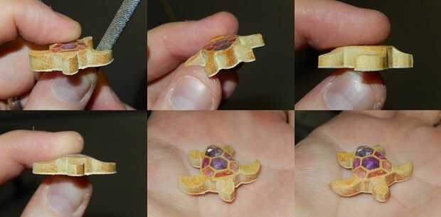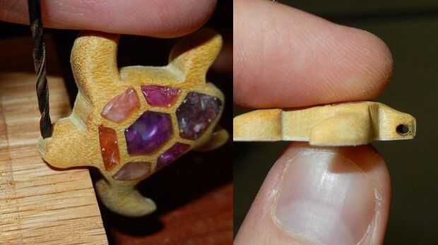 En el centro de lijado de grano 400 a 600, perforé el agujero para el ojo en el que coloqué la conclusión a la que fije la cadena del collar o cuerda.