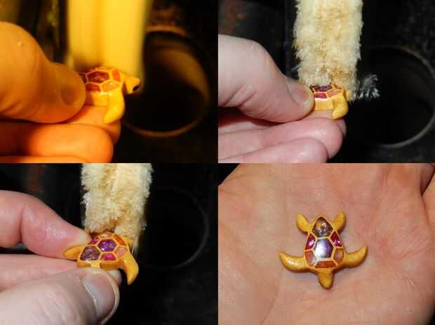 Después de aproximadamente cuatro (¡ oh sí!) capas de aceite natural, el colgante era pulir mediante una alta velocidad de la rueda que pulimenta lino.