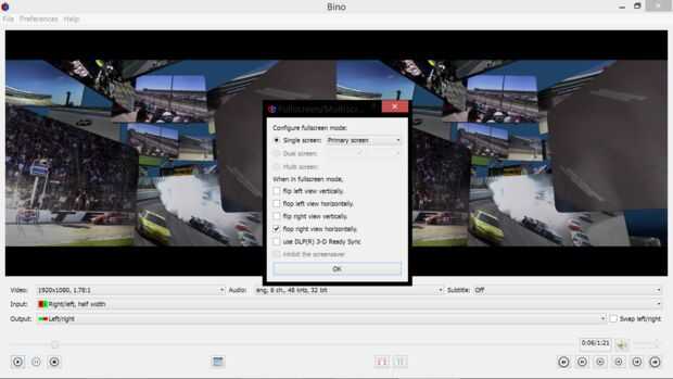 Haga clic en preferencias manu para acceder a los ajustes de pantalla completa. marca "flop Vista derecha horizontalmente". Haga clic en "OK" para confirmar el cambio, haga doble clic en el video para cambiar al modo de pantalla completa.