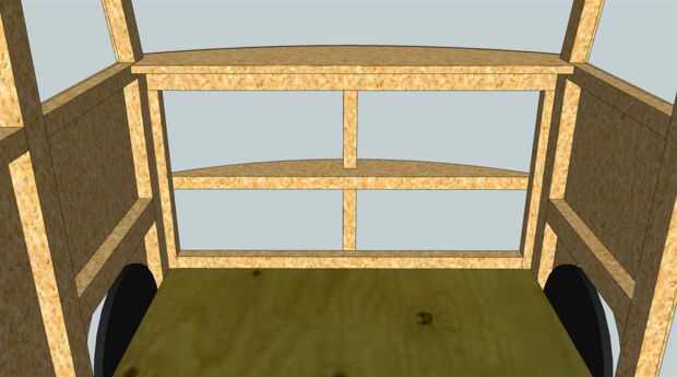 Coloque esta pieza a parte superior del extremo delantero con proyección de aproximadamente media pulgada. Este es el tablero de instrumentos.