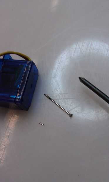 En la parte posterior del servo, quite los cuatro fáciles de tornillos sueltos y la contraportada, colocándolos con seguridad al lado.  Nota estos cuatro tornillos en la cubierta delantera y tren de engranajes y, como tal, debe tener cuidado para asegurarse de que la portada no se caiga.