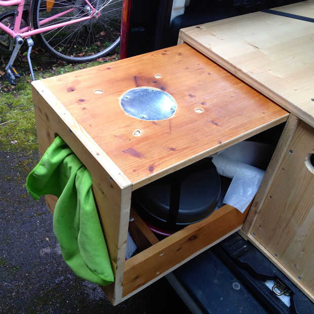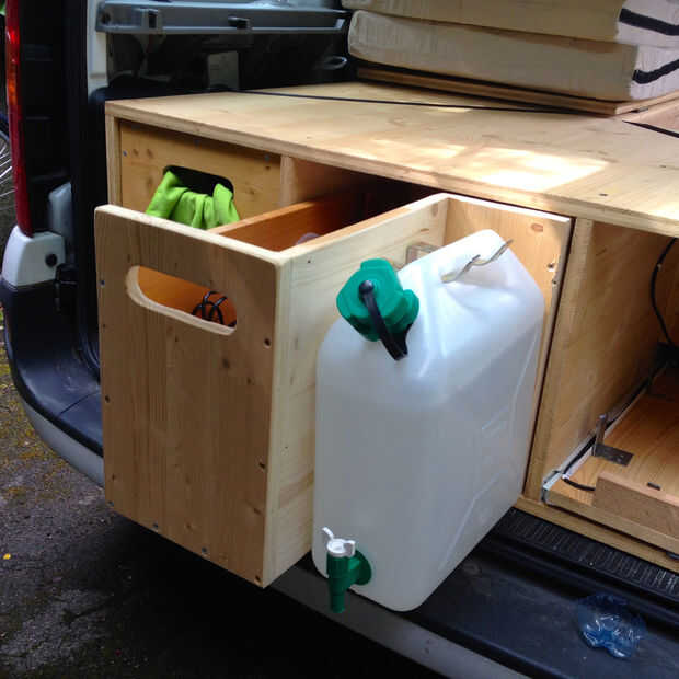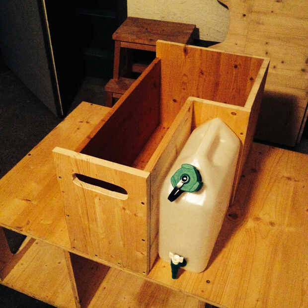 En medio de la cocina caja, donde inicialmente fue sólo una caja de plástico, sienta ahora un cuadro personalizado a medida que lleva un recipiente de agua, así como toda la comida que no necesita ser refrigerada. Cuando se resbaló la caja fuera de la ranura, se queda allí y puede agua del grifo con facilidad. Esto es especialmente útil cuando se trata de lavar tus manos o una olla para cocer la pasta de relleno.