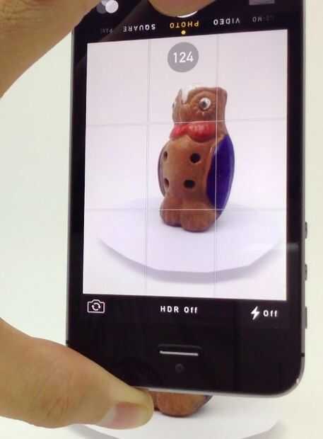 Modo de ráfaga, en lugar de tomar una serie de fotografías con Prensas de disparo independiente, se asegurará de que no agita el teléfono de la cámara mientras el objeto está siendo analizado. Dicho esto, un conjunto de ráfagas de fotografías rinde más fotos que usted necesita para hacer un modelo 3D de alta calidad. Por lo tanto, seleccione sólo 30-35 fotos de la explosión de la base y parte superior de su objeto (idealmente 30-70 fotos en total).