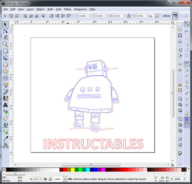 Tendremos que generar un código G. La mejor manera de hacerlo es usar Inkscape combinado con un grabador del laser del plug-in. Un editor de gráficos vectoriales de código abierto, con capacidades similares a Illustrator, CorelDraw o Xara X, usando el formato de archivo Scalable Vector Graphics (SVG) estándar de W3C. He estado usando el mismo ranuradora plug-in para su grabador, hizo un video detallando su uso.